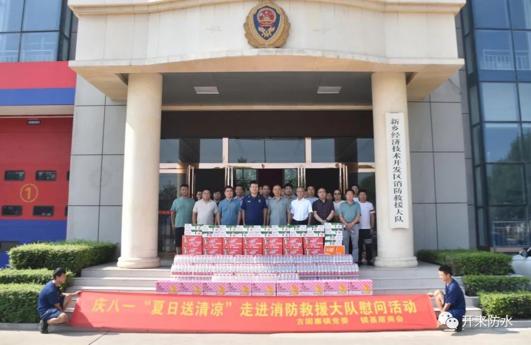 烈日酷暑,擋不住民營企業的擁軍熱情。7月26日,“八一”建軍節來臨之際,新鄉縣鎮政府組織鎮基層商會企業家們走進經開區消防隊、紅旗區消防隊、新鄉縣消防隊,開展“夏日送清涼”慰問活動,開來濕克威董事長倪貴全、萬事達董事長陳克贊、合力線業郭玉松等17位企業家積極參與,一同為消防指戰員們送去防暑降溫物資,并向他們致以節日的問候與祝福。此次慰問活動,得到了各消防支隊領導及隊員的熱烈歡迎和熱情接待。