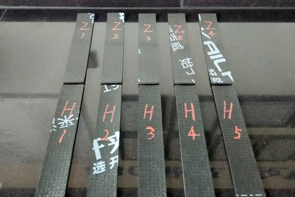 3、分別記錄每個方向5個試件的拉力值和延伸率,計算平均值。(去除任何在夾具10mm以內斷裂或在試驗機夾具中滑移超過極限值的試件的試驗結果,用備用件重測)