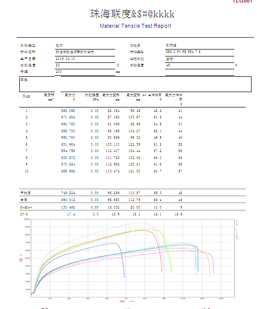 4、拉力的平均值修約到5N,延伸率的平均值修約到1%。